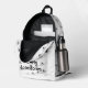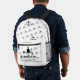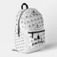 Weißer Rucksack mit schwarzem McFly Zubehör in Kleindruck überall. Ein großer Druck des schwarzen McFly Accessoires Logo auf der Tasche des Rucksacks.