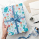 Ein Hübsches blaues Muster der Osterbäume und Frühlingsblumen