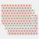 Ein niedliches Kuchenmuster auf Verpackungspapier in drei verschiedenen Farbkombinationen, darunter Schokoladenbraun, Pinke und Blues. Gut geeignet für Bäckereien als Geschenkpapier, für Geburtstagsgeschenke und andere Zwecke.