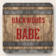 Das coole Korkbacken-Untersetzer-Set für die Lebenden zeigt "Backwoods Babe" bedrückten dunkelroten Text mit extravagantem blüh auf einem Whiskey-Keg-Holzhintergrund.