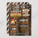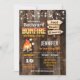 Backyard Bonfire Geburtstagsparty-Design mit rustikalem Holzhintergrund, Saitenbeleuchtung und Aquarellwand. Um auf erweiterte Bearbeitungstools zuzugreifen, gehen Sie bitte zum "Personalisieren"-Bildlauf nach unten und drücken Sie "Klicken Sie, um weitere Anpassungen vorzunehmen".