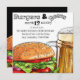 Überdimensionierter Hamburger und überdimensionales Bier stecken in den links und rechten Ecken dieser Grillen Burger und Bier-Party Einladung im Hinterhof. Passen Sie Ihre Party-Details an und ändern Sie den Schriftart und die Farbe des Schriftartes, wenn Sie es wünschen. Die Rückseite dieser Karte weist dieselbe Abbildung mit schwarzem Hintergrund auf. Ideal für Frühling und Sommer, um sich mit Party und Geburtstagen zu treffen. Schlag dich ins Party!