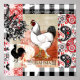 Vintages, ländliches amerikanisches Design mit weißem Brahma-Hahn, Paisley, Gingham und Damast, Alphabet und Blumenelementen. Ideal für eine Landterrasse oder eine Landküche.