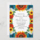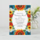Elegantes und farbenfrohes Blumendesign für einen Hinterhofsommer. Aquamarine blaue Rose, weiße Gänse, rote Wildblumen und Sonnenblumen