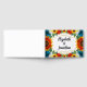 Elegantes und farbenfrohes Blumendesign für einen Hinterhofsommer. Aquamarine blaue Rose, weiße Gänse, rote Wildblumen und Sonnenblumen mit goldfarbenem geometrischem Rahmen