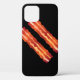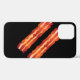 Zwei knusprige Speckstücke beleuchten dieses iPhone-Gehäuse auf schwarzem Hintergrund und machen es perfekt für den Speckliebhaber.
