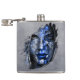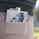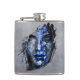 Moderne rustikale graue abstrakte und schlechte Mädchen Gesicht Flask. Strukturierte Wirkung Abstrakter Kunststil. Graue, schwarze, weiße, blaue Farben. Modernes, rustikales, einzigartiges Kunstdesign von Emerico.