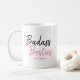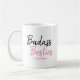 Das perfekte Geschenk für Ihre BESTE FREUNDIN - die Badass Besties Tasse. Auf der einen Seite steht "Badass Besties" in einem handgeschriebenen Schriftart und hat Ihre Namen, auf der anderen Seite steht "Wenn wir zusammen sind, sind wir Cooler als alle anderen".