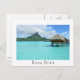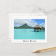 Postcard mit luxuriösem Bungalow-Resort in der klaren, blauen Lagune der pazifischen Insel Bora Bora, in der Nähe von Tahiti in Französisch-Polynesien mit weißer Grenze und in schwarz dem Text: "Bora Bora".