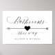 Einfache elegante Kalligrafie Script Hochzeitsempfang Bäder Auf diese Weise Arrow mit Links Richtungszeichen, in schönen fließenden extravaganten Buchstaben und Ihren personalisierten Namen. Stilvolles, aber einfaches formales Design in Schwarz/Weiß oder jeder beliebigen Hintergrundfarbe. Klicken Sie einfach auf den Link, um den Text anzupassen, der unter dem Bereich für die Textpersonalisierung rechts angezeigt wird, und wählen Sie Ihren eigenen Farbhintergrund aus. Dieses Schild Poster-Template macht es einfach und schnell, atemberaubende Ergänzungen Ihrer Hochzeitsdekoration zu schaffen. Die Zeichen können vergrößert werden, es gibt viele Größen zur Auswahl, sowie Optionen für die individuelle Gestaltung und Anpassung. Auf diese Art Hochzeit kundenspezifische Schilder. ~ Karo mein Geschäft oder Sammlung unten für weitere ergänzende Zeichen für Ihre Hochzeit