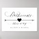 Einfache Elegante Kalligrafie Script Hochzeitsempfang Bäder Auf diese Weise Arrow zeigen nach rechts Zeichen, in schönen fließenden extravaganten Buchstaben und Ihre personalisierten Namen. Stilvolles, aber einfaches formales Design in Schwarz/Weiß oder jeder beliebigen Hintergrundfarbe. Klicken Sie einfach auf den Link, um den Text anzupassen, der unter dem Bereich für die Textpersonalisierung rechts angezeigt wird, und wählen Sie Ihren eigenen Farbhintergrund aus. Dieses Schild Poster-Template macht es einfach und schnell, atemberaubende Ergänzungen Ihrer Hochzeitsdekoration zu schaffen. Die Zeichen können vergrößert werden, es gibt viele Größen zur Auswahl, sowie Optionen für die individuelle Gestaltung und Anpassung. Auf diese Art Hochzeit kundenspezifische Schilder. ~ Karo mein Geschäft oder Sammlung unten für weitere ergänzende Zeichen für Ihre Hochzeit