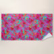 Dieses Strandtuch wird in tropischen Palmen gedruckt. Farben Aqua, Hot Pink Pink Passen Sie dieses Objekt an oder kaufen Sie, wie es ist. Bild