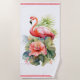 Dieses Badetuch wird in einem tropischen Flamingo-Aufdruck gezeigt. Passen Sie dieses Objekt an oder kaufen Sie, wie es ist.