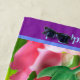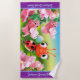 Badetuch Marienkäfer-Blumengarten. Lila Rand