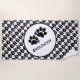 Der weiße Hintergrund wird in diagonalen Reihen von Polydactal-Pfotendrucken abgedeckt. Zeigt zwei größere Drucke mit "Name" in einem Winkel darunter. Personalisieren Sie Ihre persönlichen Daten mit dem Namen Ihres Haustiers.