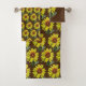 Dieses Bild ist von meiner Acrylmalerei, Sonnenblume, abgeleitet. Option, um den Text auf dem Waschlappen und der Hintergrundfarbe auf diesem Blumenhandtuch Set zu ändern.