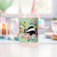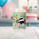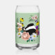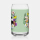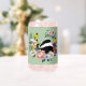 Ein niedliches Schwarz-Weiß-Schild, das zwischen wilden Blume und Pilzen im Hintergrund von Salbei sitzt