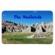 Die natürliche Schönheit der Badlands wird in diesem Foto gezeigt. Der Badlands Nationalpark liegt in Süddakota und ist ein geologisches Wunder von erodierenden Gesäß, Spitzen und Spitzen. Farbenfrohe Gesteinsschichten geben den Panoramablick auf die zerklüftete Landschaft aus, da die Sonne Schatten spendet, die die Spalten, Risse und Risse füllen. Parallel gestreifte und aufgereihte Felsen zeichnen die Landschaft in Rot-, Braun-, Tan- und Graufarben ab, was zu einem spektakulären Blick auf das felsige Gesteinswesen führt. Im Vordergrund ist das Grün der Mischgrasprairie des Nationalgraslands sichtbar. Spuren von weißen Wolken kann man in einem klaren blauen Himmel sehen.