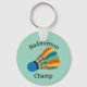 Badminton Design Schlüsselanhänger mit anpassbarer Text- und Hintergrundfarbe.