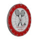 Badminton-Geschenke, Schläger und Shuttlecck-Dart-Platine mit einem minimalistischen schwarzen Symbol von zwei Badminton-Schlägern, einem Shuttleservice und einem roten Rand. Die perfekte Geschenkidee für den Badminton Spieler oder Liebhaber.