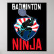 Badminton Ninja Shirt Funny Badminton Player Badmi Poster