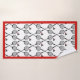 Badminton-Geschenke, Schläger und Shuttlecck-Handtuch-Set mit Monogramm zeigt eine minimalistische schwarze Ikone von zwei Badminton-Schläger und ein Shuttle mit rotem Rand. Das Handtuch weist schwarze, weiße und rote Streifen auf, während das Waschlappen mit dem Monogramm rot ist.