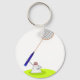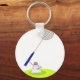 Niedliche Cartoon-Abbildung eines Badminton Shuttleccks mit einem Badminton-Schläger, der für ein Spiel bereit ist. Bilder auf verschiedenen Geschenken und Produkten erhältlich. Schlüsselringe. Schlüsselanhänger.