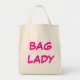 "BAG LADY" IN LILA TEXTSCHRIFTEN