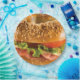 Ein Bagel, auch Beigel genannt, ist ein Broterzeugnis aus den jüdischen Gemeinden Polens. Traditionell wird es von Hand in Form eines Ringes aus grob handgemachtem Weizenteig geformt, der zunächst kurz in Wasser gekocht und dann gebacken wird. Das Ergebnis ist ein dichtes, kaues, doppeltes Interieur mit einem braunen und manchmal knusprigen Äußeren. Die Bagels werden oft mit Samen überzogen, die auf der äußeren Kruste gebacken werden, wobei die traditionellen Samen Mohn, Sonnenblumen oder Sesamsamen sind. Einige mögen Salz auf ihrer Oberfläche bestreut haben, und es gibt verschiedene Teigarten, wie Vollkorn oder Roggen.