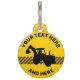 Silhouette des Baggers. Vector Icons mit anpassbarer Farbe. Zwei Textfelder im Kreis. Benutzerdefinierter Text auf der Rückseite