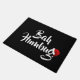 Door Matte ist in Schwarz und Weiß mit einem Urlaub Bah Humbug und Weihnachtsmannmütze gezeigt. Passen Sie diese Matte an oder kaufen Sie, wie es ist.