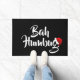 Door Matte ist in Schwarz und Weiß mit einem Urlaub Bah Humbug und Weihnachtsmannmütze gezeigt. Größere Matte hier gezeigt. Passen Sie diese Matte an oder kaufen Sie, wie es ist.