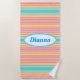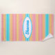 Wide and narrow stripes in shades of blue, orange, pink and yellow on this beach towel will make you feel like you're in the tropics, no matter where you are! Bright and cheerful, with warm colors throughout.