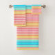 Dieses Set mit seinen breiten, schmalen Streifen in den Farben Blau, Orange, Rosa und Gelb verleiht Ihrem Badewanne einen tropischen Look! Es ist hell und fröhlich und erinnert an warme Strände, Sonne und Meer!