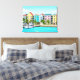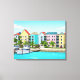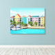 An illustration from a photograph of colourful houses in the Bahamas printed on a canvas.