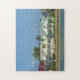 Ein schöner Blick auf bunte Häuser in den Bahamas, aufgedruckt auf einem Rätsel.