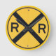 Foto eines orangen und schwarzen Bahnübergangsschildes. Bild Copyright 2013 von Margaret E. Cmelik.