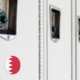 Flagge Bahrains. Die Nationalflagge Bahrains (Arabisch: ل م ا ب ح ع ل ر Jenseits) besteht aus einem weißen Band auf dem links, getrennt von einem roten Bereich auf der rechten Seite durch fünf Dreiecke, die als gesiebte Linie dienen. Rot ist die typische Farbe für die Fahnen der arabischen Staaten des Persischen Golfs. Das Weiße ist auf der Hüftseite; die fünf Punkte stellen die fünf Säulen des Islam dar.