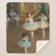 Bailarinas esperando su momento para actuar en una amplia y hermosa sala adornada con madera tallada y dorada. Con estas niñas vestidas con románticos tutús azul turquesa y blanco con un toque de amarillo, esta manta es el complemento perfecto para una sala de estar, un salón, una biblioteca de estilo clásico. Encantará a todos los amantes del ballet y de la danza.