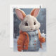 Der Bailey-Hasen ist bereit für Winterabenteuer. Ai entwarf Kunst mit einem für den Winter gekleideten Cartoon-Kaninchen. Geschlechterneutrales Design ist skurrile Winterzeit-Spaß.