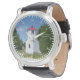 Uhr, Klassische Damenuhr mit schwarzen Lederarmband