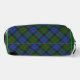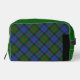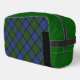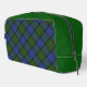 This dopp kit features the traditional Baird tartan, a sophisticated Scottish pattern characterized by a rich forest green and deep navy blue base. Thin, intersecting lines of black and bright purple provide a refined contrast and unique detail to the classic plaid structure. This geometric arrangement celebrates highland clan heritage with a balanced and symmetrical aesthetic. The understated color palette and structured lines offer a distinguished look, reflecting historic textile craftsmanship and a proud connection to ancestral history.