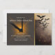 Eine dunkle, nächtliche Umgebung in Schwarz, Dämmerung und Sepia-Tönen hat weiche, goldene Fireflies, die sanft hinter der Silhouette einer Fledermauskolonie leuchten. Diese eindrucksvolle und elegante Einladung eignet sich ideal für Veranstaltungen zum Party eines Teenagers oder eines erwachsenen Halloween-Kostüms. für thematische Geburtstagspartys oder Goblin und Hexen kommen zusammen.