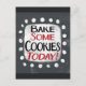"Bake some Cookies Today" ist ein niedliches Textdesign in Grau mit schwarzem und rotem Text. Er sitzt auf einer weißen Akzent-Form und niedliche weiße Polka-Punkte, die ihn umgeben.