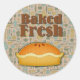 Baked Fresh words with a yummy pie under the words, with a Vintag kitchenware background
