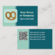 Eine gesalzene Drehung Brezel Brot steht im Mittelpunkt dieses stilvollen Designs, das sich ideal für eine Bäckerei, einen Lebensmittelservice oder ein Catering-Unternehmen eignet. Ihr QR-Code und Ihre Details können auf der Rückseite hinzugefügt werden. Wenn Sie ein anderes Logo haben, können Sie das geknotete Laibmotiv ersetzen und Ihre eigene Grafik erscheint stattdessen auf der Vorderseite.
