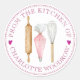 Hübsche Aquarellfarbe "aus der Küche", mit Whisk, rollendem Button- und Rohrbeutel, runden Lebensmitteletiketten, mit klassisch dekorativer offener Gesichtstypografie. Fügen Sie einfach Ihren Namen hinzu. Ein auffälliger Stil für Ihre Backwaren. Sie können das einfache Design-Tool verwenden, um den Stil und die Farbe des Schriftartes von Schriftart zu ändern.