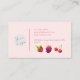 Niedliche und moderne Visitenkarte für eine Bäckerei, in der Kuchen, Kuchen und Obst dargestellt werden.