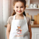 This kids' apron for animal lovers features a cute watercolor illustration of a fox in a pink dress and white apron and chef's hat carrying a cake. Personalize it with your child's name in orange cursive handwriting.