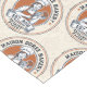 This vintage-style circular logo features a cheerful female pastry chef wearing a traditional white chef's hat and apron. She is framed by a warm orange circular backdrop and holds a wire whisk in one hand and a flaky croissant in the other, symbolizing her culinary expertise. Below her, a blank, elegant parchment scroll spans the bottom of the emblem, providing a perfect space for a bakery’s name. The design uses a clean, two-tone color palette of navy blue and burnt orange with a slightly distressed texture, giving it a professional yet classic artisanal feel.